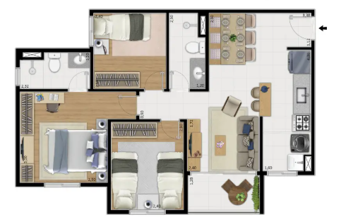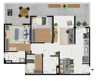 - Tipologia: 2 e 3 quartos com suíte e varanda
